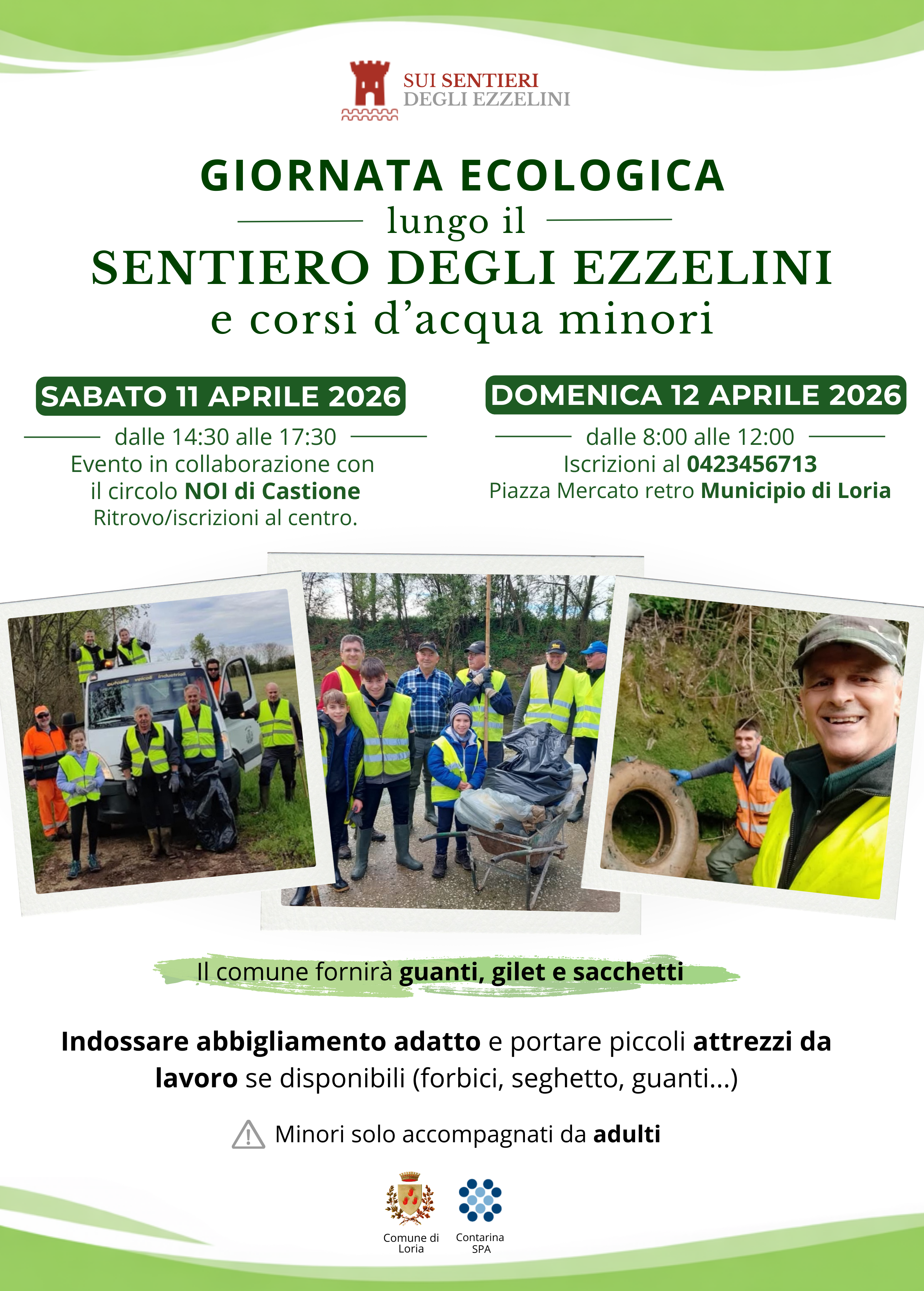 Per questo, il Comune di Loria vi invita a dare attivamente il vostro contributo per rendere migliore il nostro territorio, con due giornate a sostegno della natura e della sostenibilità.
